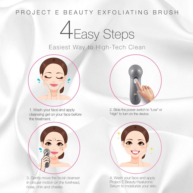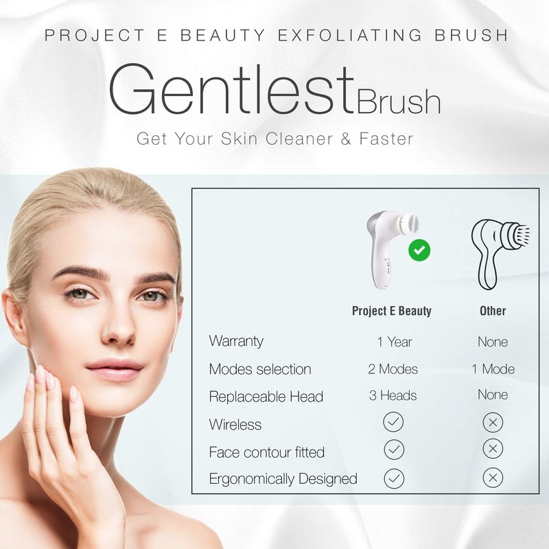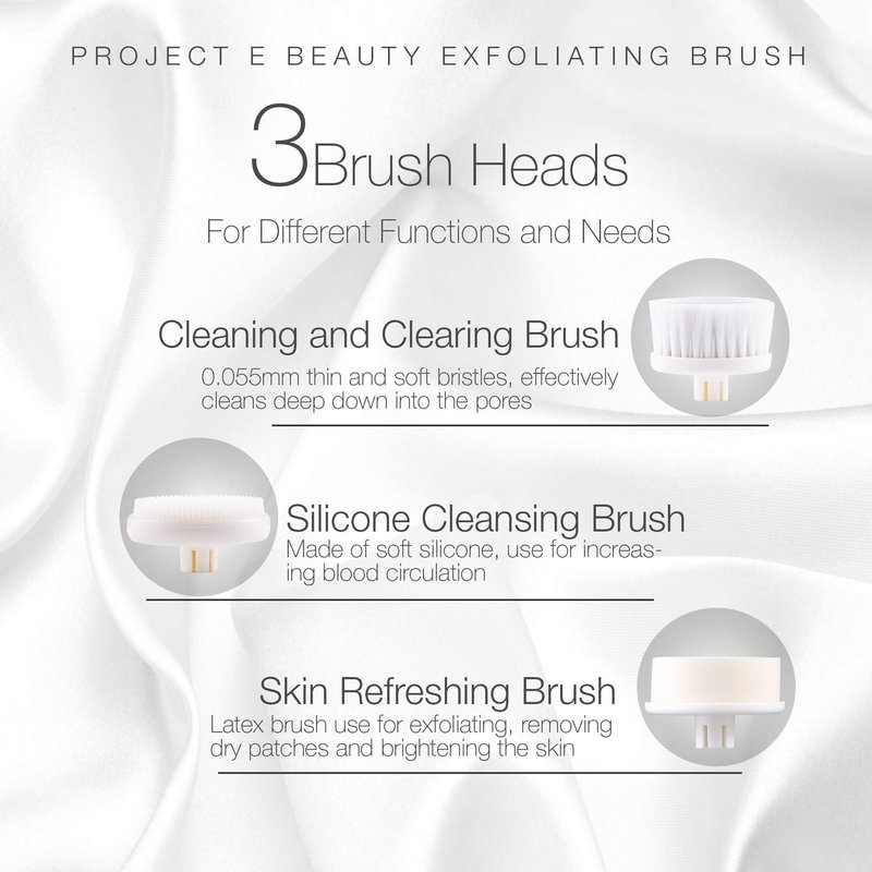- 🫧CLEANSING AND EXFOLIATION - Bring face cleansing to another level with Project E Beauty’s Electric Facial Brush. This convenient beauty tool has both deep cleansing and exfoliating functions. The brush heads are allowed to spin in a 360° fashion to effectively rid pores of clogging and impurities.