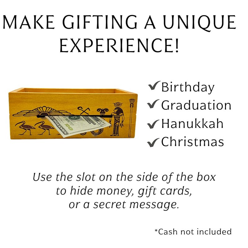 - A SMART WAY TO ENHANCE A GIFT: This wooden trick box includes a convenient slot to hide a gift card or cash, adding a layer of excitement to any birthday gift, graduation present, or holiday stocking stuffer.