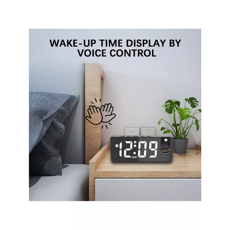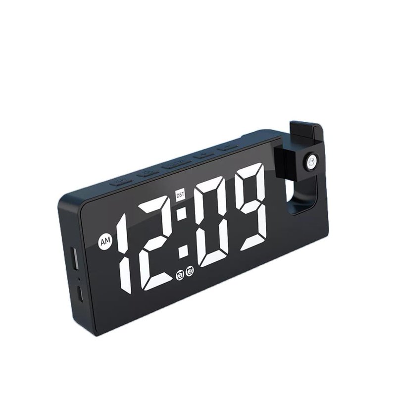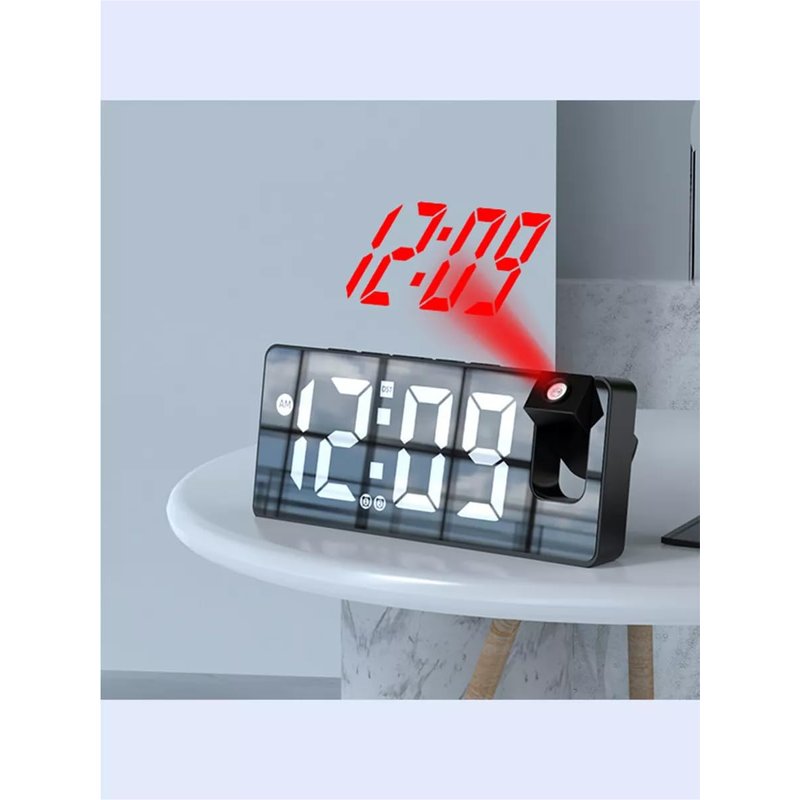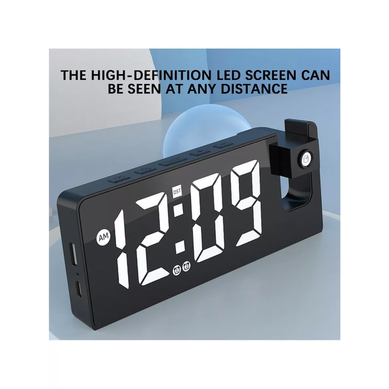Projection Alarm Clock with USB Charging Multi-Function LED Large Digital Display Mirror Design Bedroom 180° Rotatable 24 Hour