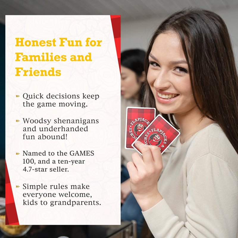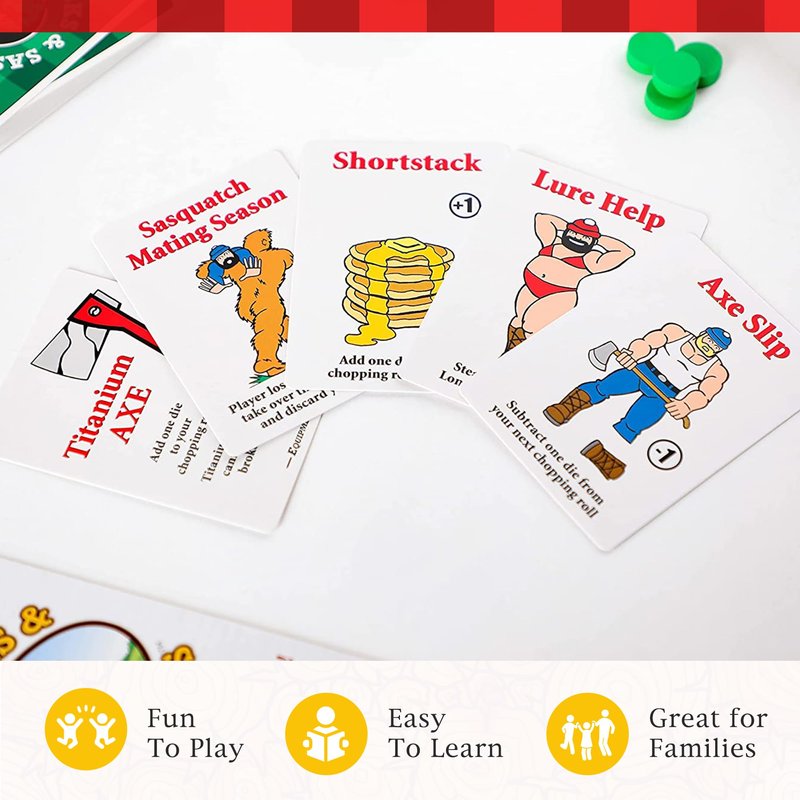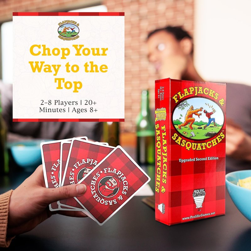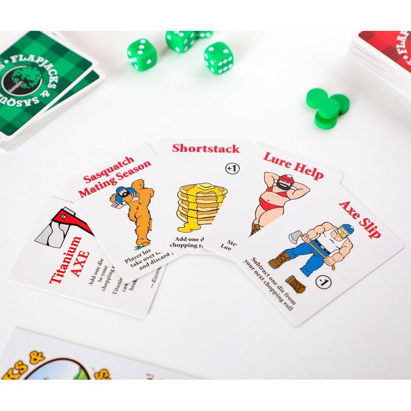 - EXCITING GAMEPLAY: With the second edition of your beloved Flapjacks & Sasquatches original card game, you get even more fun for the whole family. Each lumberjack will need axe cards and the power of flapjacks to cut down trees while avoiding blisters and sasquatches!