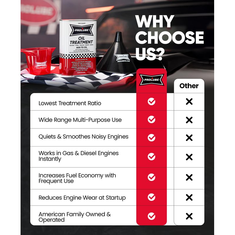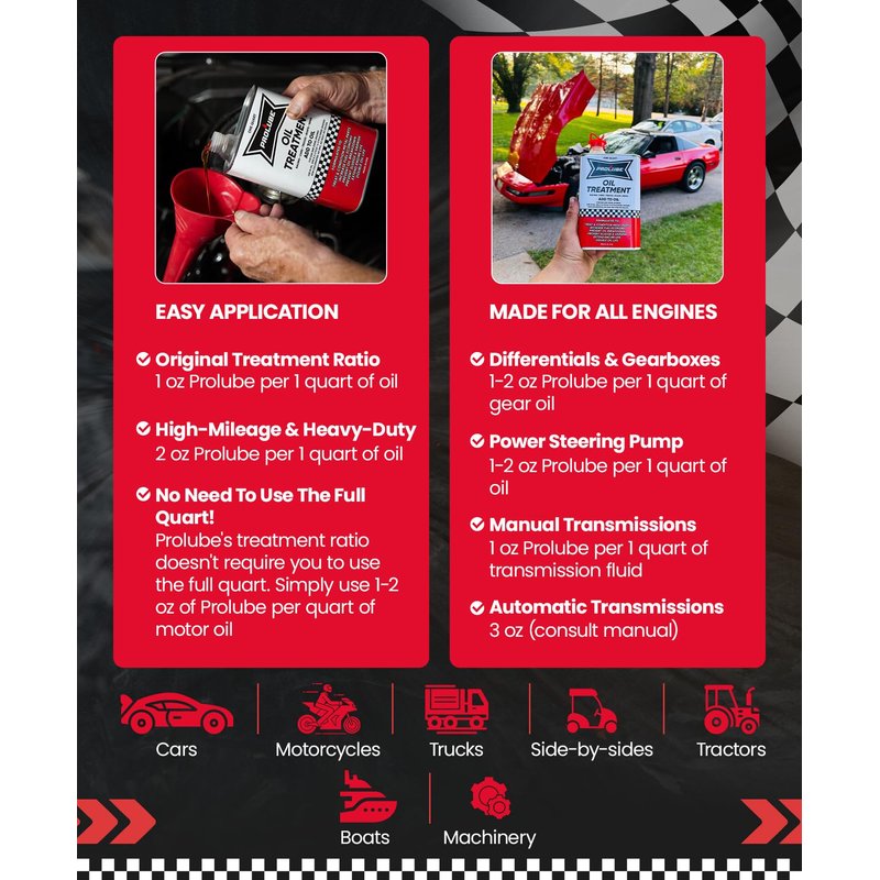 Prolube Oil Treatment - Engine Oil Additive for Gas & Diesel Engines - Reduces Wear, Noise, Vibration - Boosts Fuel Economy & Horsepower - Works on Transmissions & Differentials (1QT)