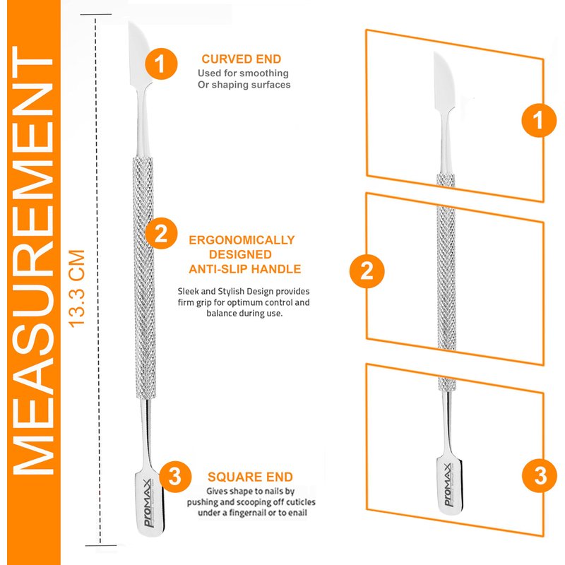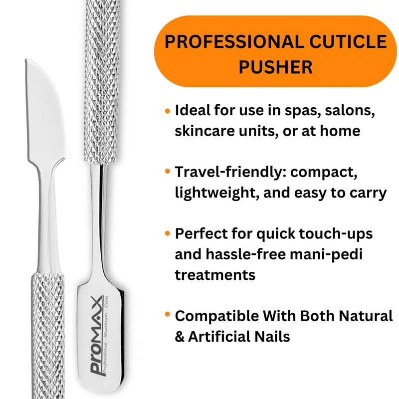 Promax care - Cuticle Pusher and Cutter - Professional Grade Stainless Steel Cuticle Remover and Cutter - Durable Manicure and Pedicure Tool - for Fingernails and Toenails - (Silver)