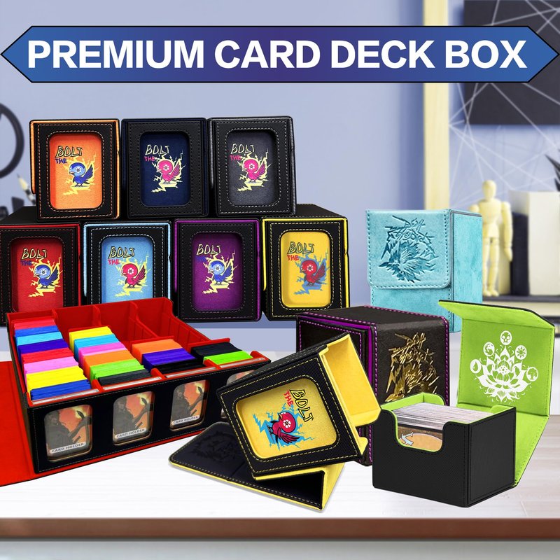 - Stunning Visual Design: Experience the artistry of the PROMAXIBINDER MTG deck box, inspired by the iconic Bolt the Birds. The redesigned cover offers a fresh and captivating look that will leave a lasting impression on all players. Innovative window design is perfect for EDH Commander players and versatile enough for Prime cards like Energy cards. The custom slots securely hold your Commander or Prime card in the included top loader for easy identification and display. The MTG deck box can also prop itself up with its lid for convenient access.