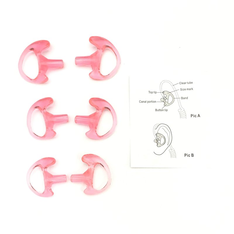 Our extremely soft and comfortable ear molds/earplugs replacement for your acoustic tubes. This style of earmold is design to eliminate the annoying drawbacks of the generic mushroom-tip ear mold. This earmold will sit comfortably on the outer ear vs. the uncomfortable mushroom-tip that you have to deeply plug into your ears just so it could stay on.