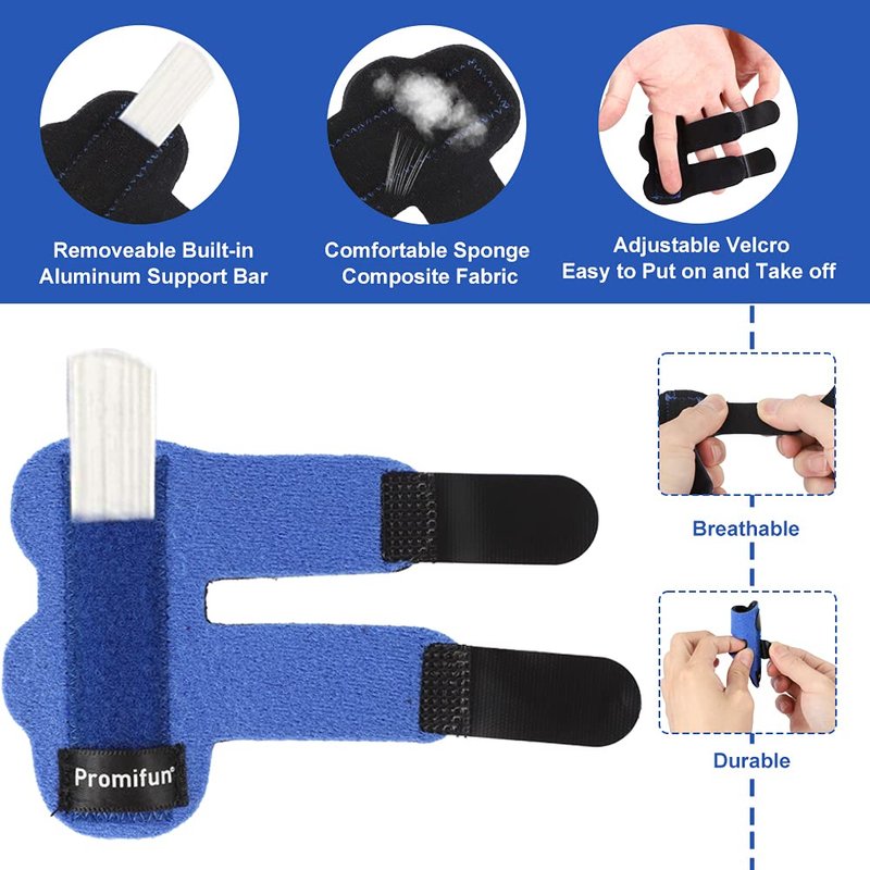 - 【What You Get】The package comes with 2 Pcs of finger splints. Promifun is especially concerned about the quality of the products and customer experience, so if you have any questions, you can feel free to contact us. We guarantee 100% money free back for quality problem item.