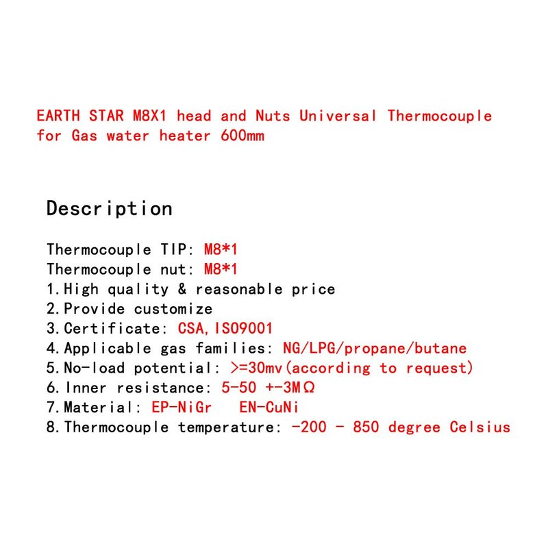Propane BBQ Grill, Firepit, Fireplace Heater Universal Gas Thermocoupler Sensor M8x1 Thread,Length 600mm/24inch
