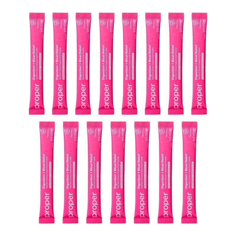Proper, The Pinks Digestion and Bloat Relief. Drink Mix with Gut Health Probiotics, Prebiotics, Beet Root & Enzymes for Digestive Support. Bloating and Microbiome Supplement for Women and Men