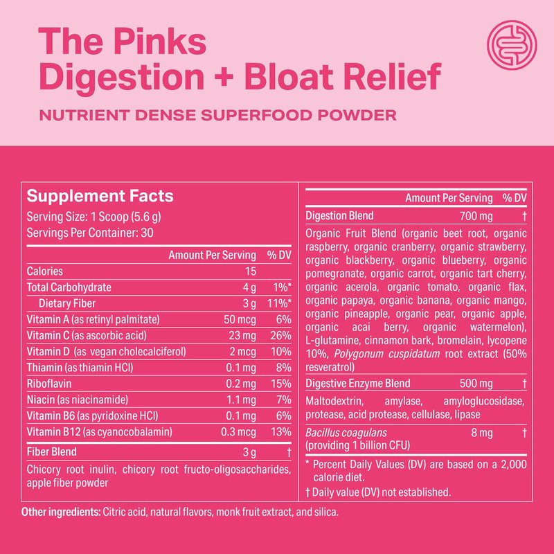 For digestive comfort and wellness, go pink! Proper Digestion and Bloat Relief.