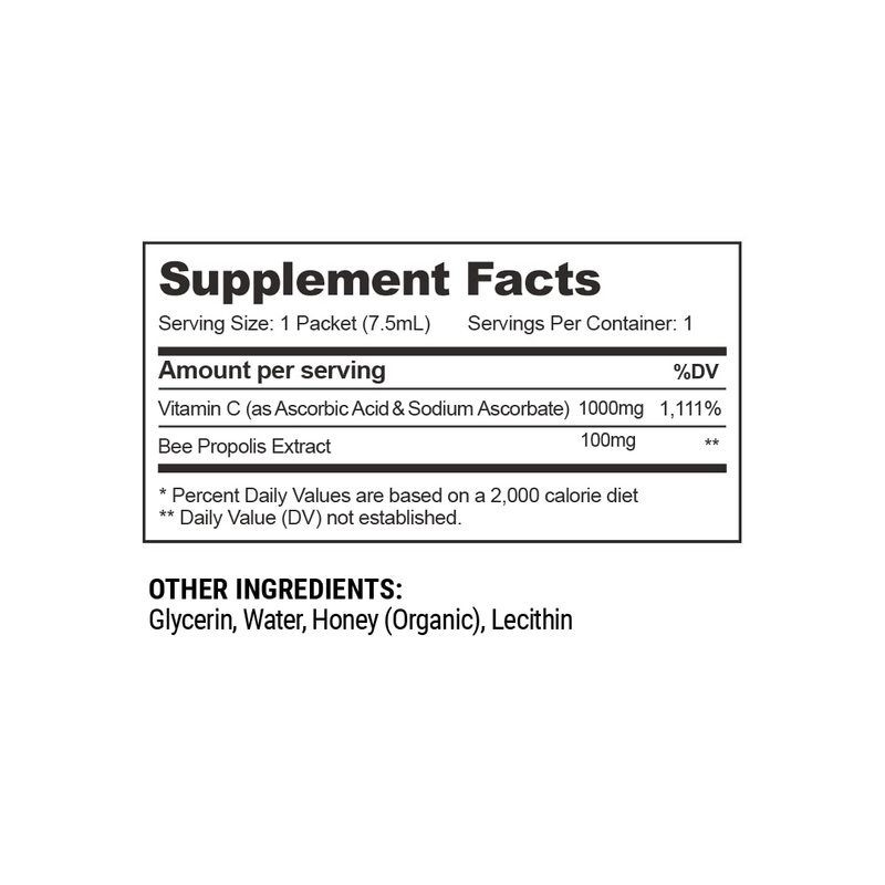 - SUPERCHARGED IMMUNE SUPPORT: Each dose contains 1000mg of Vitamin C and 100mg of Propolis which delivers 300+ beneficial compounds, antioxidants like flavonoids and polyphenols. Known as the bodyguard of the beehive, bees use it to line the walls of their hives to keep the germs out. We use it to support our immune systems, soothe scratchy throats, and combat free radical damage in the body.