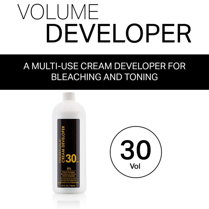 - For Salon Professionals Only - This professional-quality 30 volume cream developer provides hair with a strong lightening action without color deposit. Designed for use with permanent hair colors and with all powder and liquid lighteners.