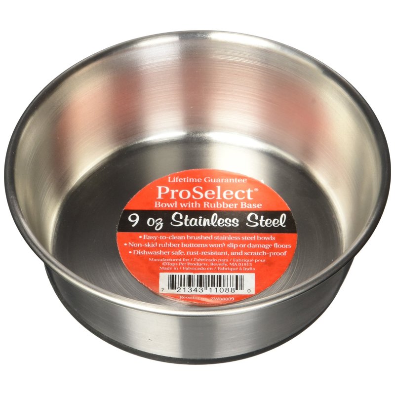 Proselect Stainless Steel Dog Bowl with Rubber Base, 4-1/2-Inch, 9-Ounce