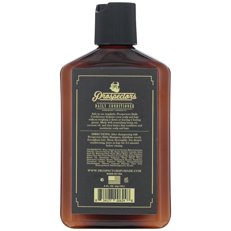 Safe to use regularly, Prospectors Daily Conditioner hydrates your scalp and hair without weighing it down or leaving it feeling greasy. Made with nourishing hemp oil, coconut oil and shea butter that condition and moisturize the scalp and hair. Pair with our Daily Shampoo for the perfect combination. Made in the U.S.A. 8 oz.