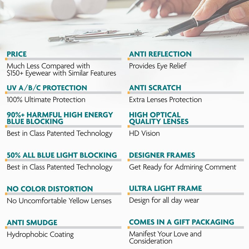 - BEYOND BLUE BLOCKING: 8 Advanced Lens Coatings including Anti-Glare and Smudge-Resistance