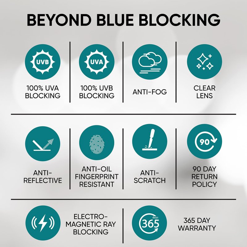 - 🤩 BEYOND BLUE BLOCKING: 8 Advanced Lens Coatings including Anti-Glare and Smudge-Resistance. Don't settle for distorted vision: our clear blue light glasses deliver crystal clear vision.