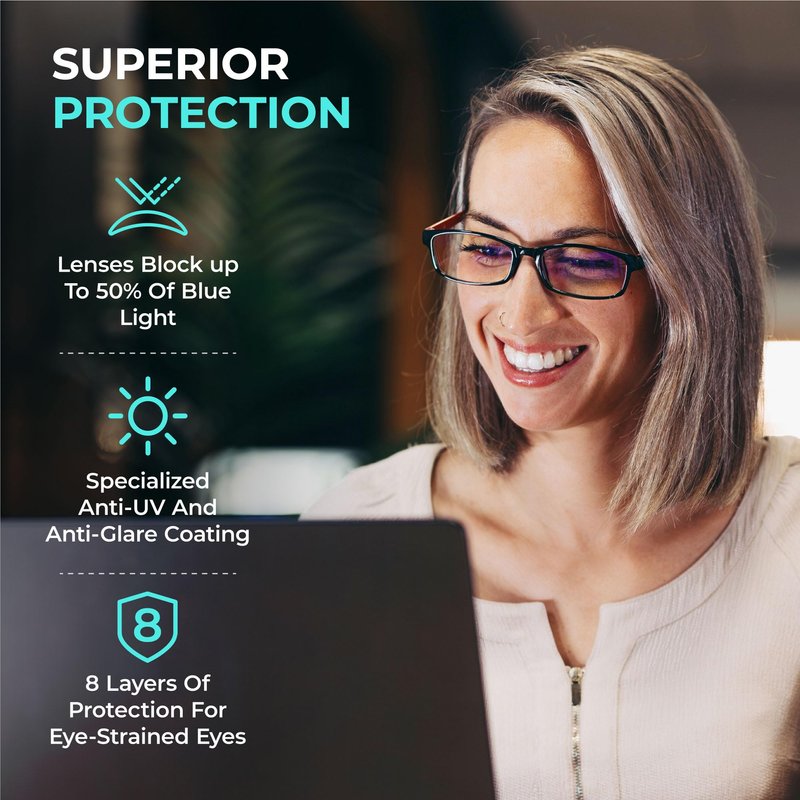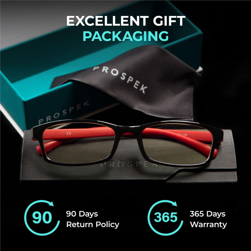 PROSPEK's Blue Light Blocking Glasses: Protect Your Eyes from Harmful Screen Rays and Strain Are you tired of feeling the strain on your eyes after a long day in front of your computer or gaming screen? Do you want to protect your eyes from the harmful blue light that emits from electronic devices? Look no further than PROSPEK's Blue Light Blocking Glasses. Our glasses feature high optical quality lenses with anti-glare and anti-smudge coatings, providing clear vision without any distortion. The lenses also have seven coatings, including blue-light blocking and UV filters. This means that our glasses not only protect your eyes from blue-light rays but also from the sun's harmful UV rays. But PROSPEK's glasses are not just protective; they are also fashionable. Our lightweight frames come in both men's and women's styles, with a variety of trendy designs to choose from. And with our affordable prices, you can protect your eyes in style without breaking the bank. Don't settle for cheap, ineffective blue-light blockers that only provide a tinted lens. PROSPEK's glasses provide clear vision while blocking out the harmful blue light that can cause eye strain and sensitivity. Say goodbye to reflective glare and hello to comfortable, protective, and stylish glasses. Invest in your eye health and choose PROSPEK's Blue Light Blocking Glasses. Whether you're working on your computer or gaming all night, our glasses will provide the protection and comfort you need to keep your eyes feeling fresh and strain-free. Order yours today and see the difference for yourself.