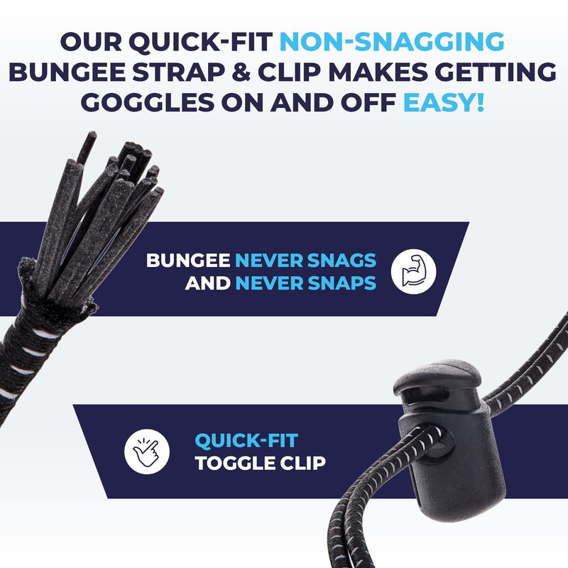 - THE COMFIEST, EASIEST TO ADJUST, BUNGEE CORD RACING GOGGLES AVAILABLE - Our unique bungee cord swimming goggle strap is super strong, extremely comfortable, and so easy to adjust & fit that you will be amazed at its superior ease of use and comfort. So much better than traditional silicone straps, our goggles will be loved by competitive, recreational, racing and triathlon swimmers.