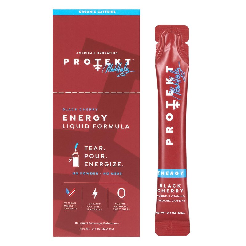 Protekt Healthy Energy Drink Packets - Sugar-Free, Keto and Paleo Friendly & Vitamin B12 Boosted - Black Cherry Energy Drink Packets by Mark Healey, Pack of 10