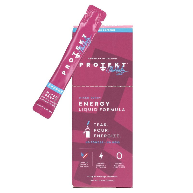 "Protekt ENERGY Sachets by Mark Healey – Your Ultimate Companion for a Power Boost – No Sugar, Keto and Paleo Friendly Energy Drink with Caffeine, Vitamin B12, and Taurine – Refreshing Mixed Berry Flavor, Pack of 10 Ensure your mental and physical wellness stays at its peak with our Mark Healey’s Signature ENERGY powdered drink mix. It is a unique combo of vital B vitamins, taurine, and organic coffee offering sugar free energy drinks for enhanced cognitive operations, focused attentiveness, and clarity of thoughts. Experience the surge of pure, clean energy drinks sugar free without any energy drain aftermath. Leave behind the junk, and embrace our zero junk health supplement. No unnecessary fillers or placebo effect; our water hydration sachets are designed to provide you a consistent energy flow without any downside. Enjoy a genuinely flavored vitamin water with stevia and a bunch of plant-derived components that generate effective brain bolstering outcomes. Not just an energy drink sugar free but one with no sucralose either. Keep your daily hydration worries at bay with our hassle-free, no mess clean energy drink. These portable ENERGY sachets conveniently blend with any beverage without creating a mess, making it simpler for you to optimize mental, physical performance, energy restoration, immunity, and gut health. A mix that doubles as a sports drink, replacing caffeine powder drink mixes. Crafted with utmost care by veterans and sports athletes, we understand the importance of nature's touch. We've developed Protekt energy drink for you to maintain an ideal state for outdoor activities. Backed by rigorous quality, natural ingredients, and in-depth scientific research, these offer you a competitive edge. This zero calorie energy drink is proudly made in the USA. Our primary aim is to grant you an advantage when it matters most. Keeping that in mind, each ingredient in our energy drink mix has been chosen and sourced judiciously to replace energy powder drink mixes. Our products then undergo rigorous testing to ensure you receive precisely what you expect. Enjoy the benefits of a sports drink alongside an energy booster with zero calories. Experience the Protekt ENERGY Sachets difference today."