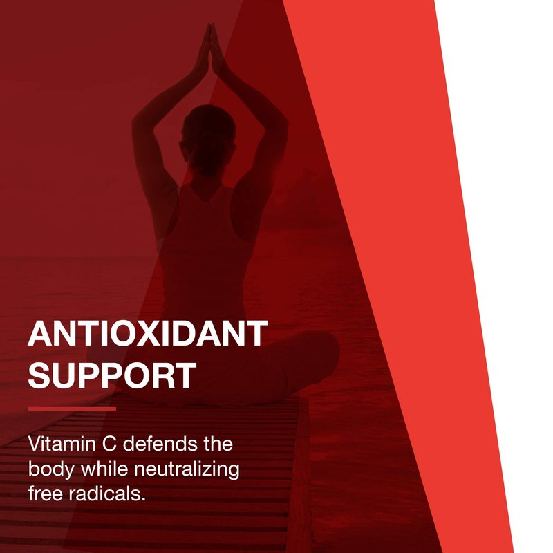 With Bioflavonoids & RutinAntioxidant ProtectionA Dietary SupplementVitamin C is a water soluble nutrient well known for its vital role in immune system function. Vitamin C is necessary for the production of collagen (a structural protein in connective tissue) and is therefore important for skin, bone, and joint health. Vitamin C is needed for amino acid metabolism, hormone synthesis, and the utilization of many nutrients, such as folic acid and iron. Vitamin C is also a highly effective antioxidant that can protect the body's cells and molecules from damage by free radicals and reactive oxygen species that can be generated during normal metabolism, as well as through exposure to environmental toxins and pollutants. In addition, Vitamin C is important for the regeneration of other antioxidants such as Vitamin E.