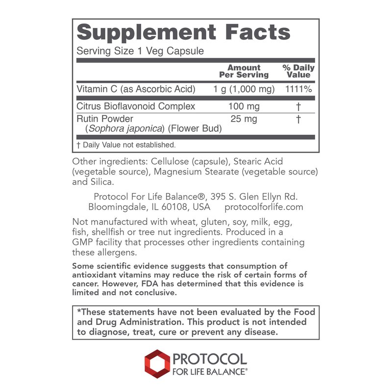 Protocol For Life Balance - C-1000 Caps with Bioflavonoids and Rutin - Antioxidant Power of Vitamin C, Supports Healthy Immune System Function, Provides Cellular Protection - 120 Veg Capsules