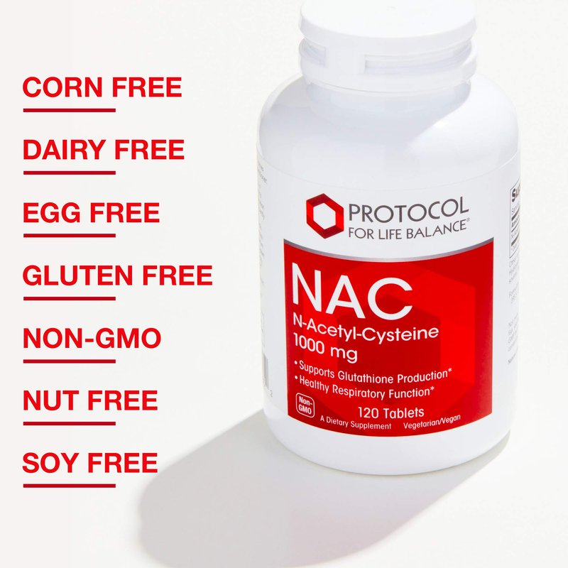 Protocol NAC 1,000mg - N-Acetyl-Cysteine Supplement - Supports Glutathione Production & Respiratory Function* - Amino Acid Supplements - Halal, Dairy- Free, Made Without Gluten- 120 Tabs