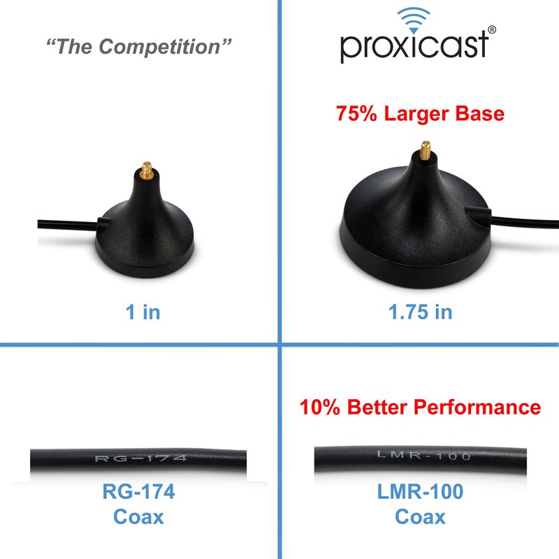 Package includes Proxicast's high-gain 12.6" omni-directional antenna with strong 1.75 in. magnetic antenna base, 10 ft of low-loss coax cable with TS9 antenna connector.