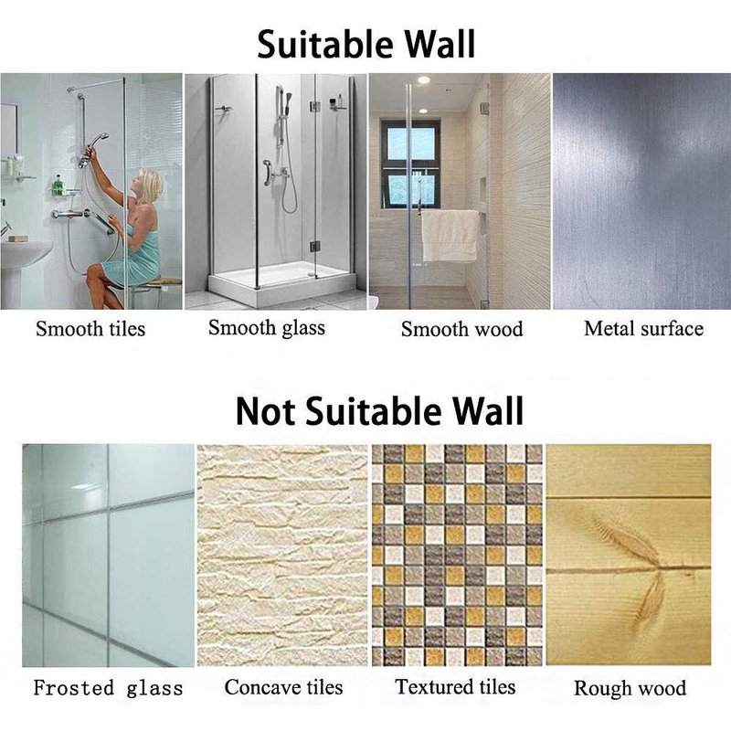 Suitable for flat and smooth solid wall, not suitable for rough places; Holds securely on smooth surface, you should make sure the stick surface clean before use it.