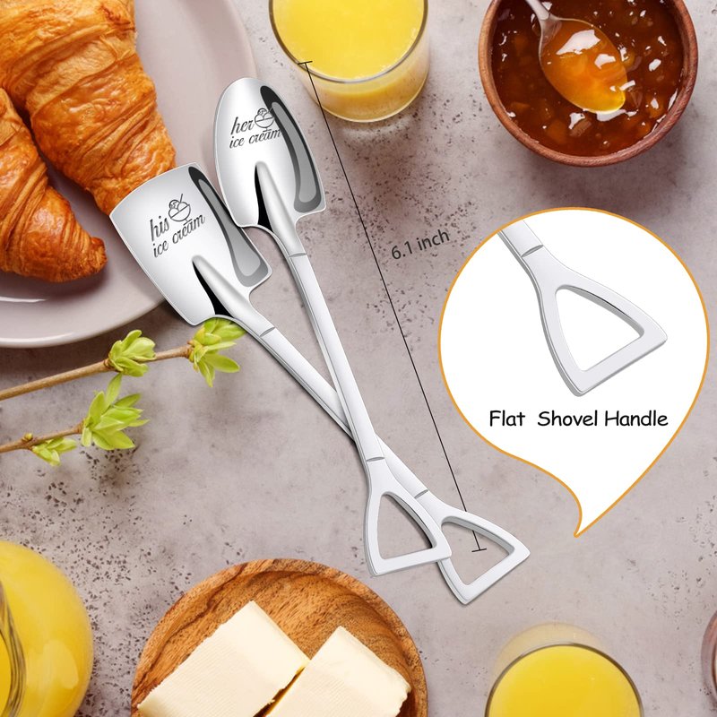 - 🔹〖Dishwasher Safety〗The spoons are dishwasher safe. The stainless steel spoon is durable, cold and heat resistant, easy to clean and maintain. His and her steel ice cream spoons are laser engraved and stored forever. Don't worry that the pattern will disappear after using it.