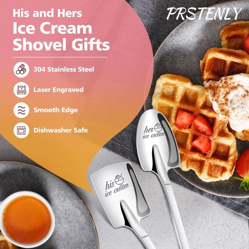 PRSTENLY Gifts for Him Her, 2 Pcs His and Hers Ice Cream Spoons Boyfriend Girlfriend Couples Gift Ideas, Anniversary Engagement Birthday Valentines Gifts for Him Her Husband Wife Couple