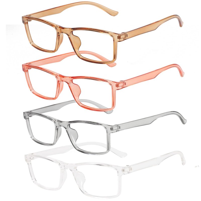 Przene 4 Pack Rectangle Blue Light Blocking Glasses,Anti Glare Eye Strain UV400 Square Eyeglasses for Men Women (MIX COLOR-C2)