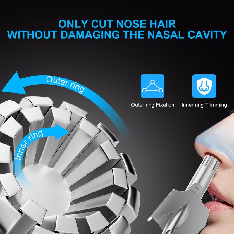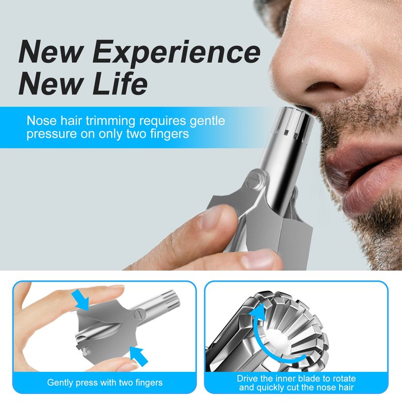 - ▶(Mechanical Simplicity) Psarnuk ear nose hair trimmer use pure mechanical working principles and have a simple structure, as you know, the simpler the more durable. With just a gentle press of your finger, it can work. Without a battery, you don't have to worry about battery issues or security checks, which fully meets your travel needs. Its structural and mechanical design will make you fall in love with this exquisite gadget.