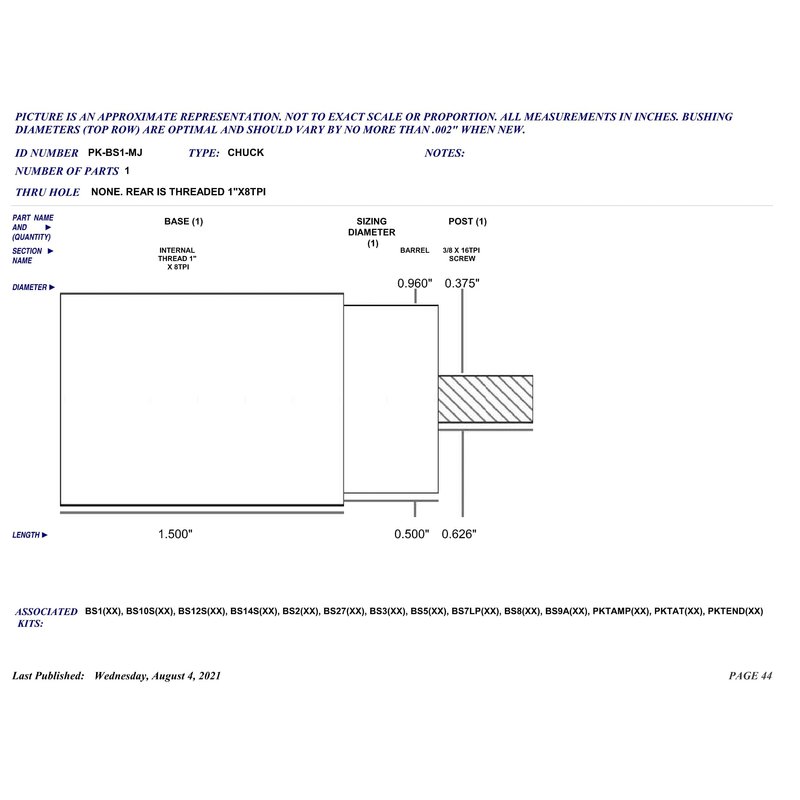 - Chuck is pre-threaded at 1" x 8tpi (female)