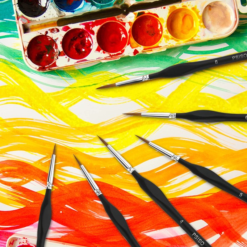 PSISO 10 PCS Miniature Paint Brushes Kit, Fine Detail Painting Brush Micro Professional Tiny Paints Brush Set for Watercolor, Oil, Face, Acrylic, Nail, Line Drawing, Scale Model Painting