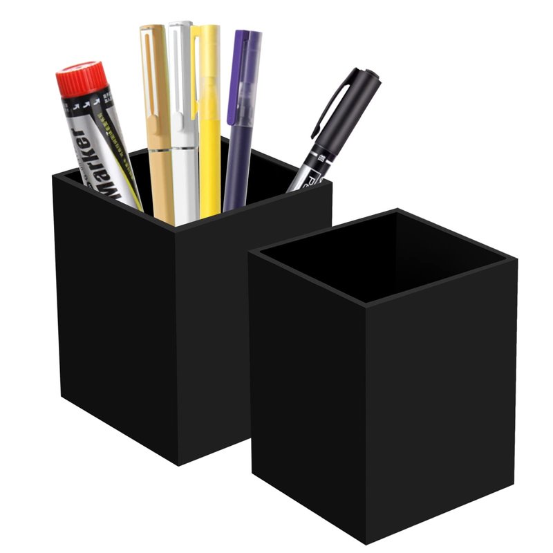 Specification: - Material: Acrylic - Color: Black - Product Size: 3 x 3 x 3.94 inch Package Included: 1 x Ptaedex 2 Pack Acrylic Pencil Holder Organizer(Not Include Accessories)