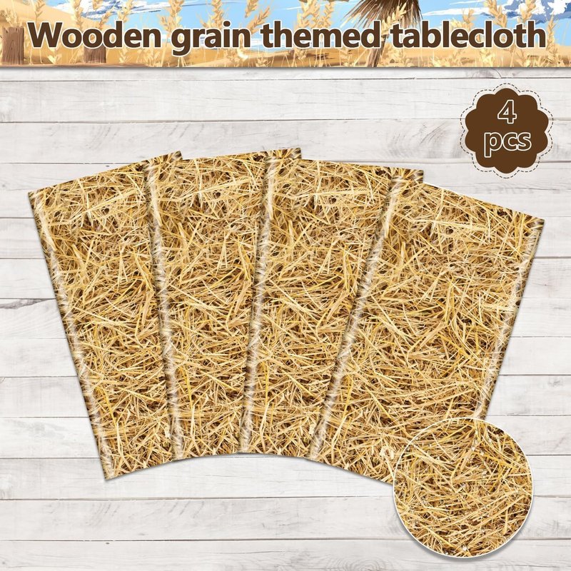 PTECDROTS 4Pcs Straw Tablecovers, Westtern Theme Birthday Tablecloths Plastic Farm Hay Table Cloths for Cowboy Western Party Supplies Farm, Hawaiian Luau, Hay Bales Party Decorations, 51x86 Inch
