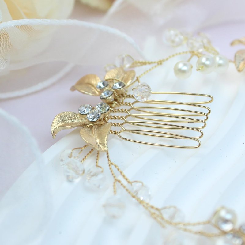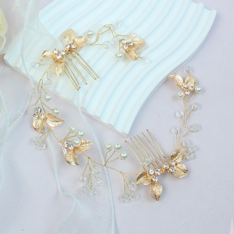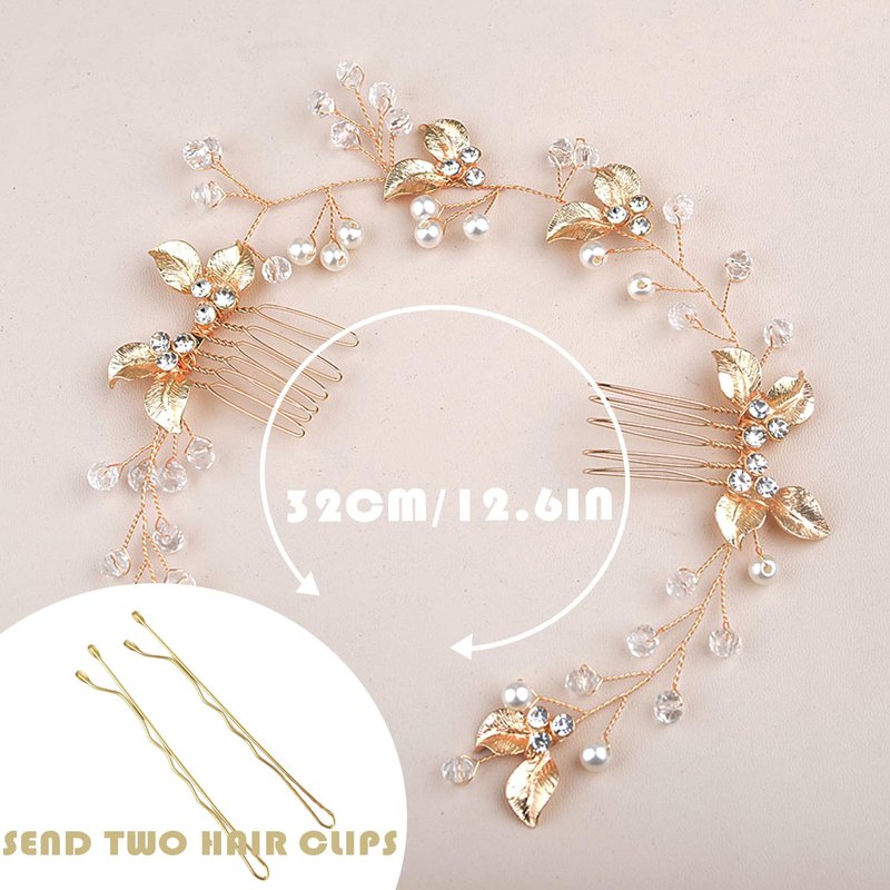 - Wedding hair combs are elegant and have leaves, flower and pearl, Give away two clips to make the hairstyle more stable,they will meet all your needs for wedding dress.