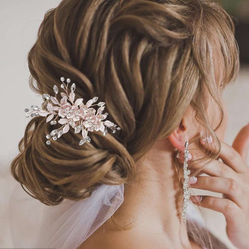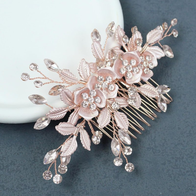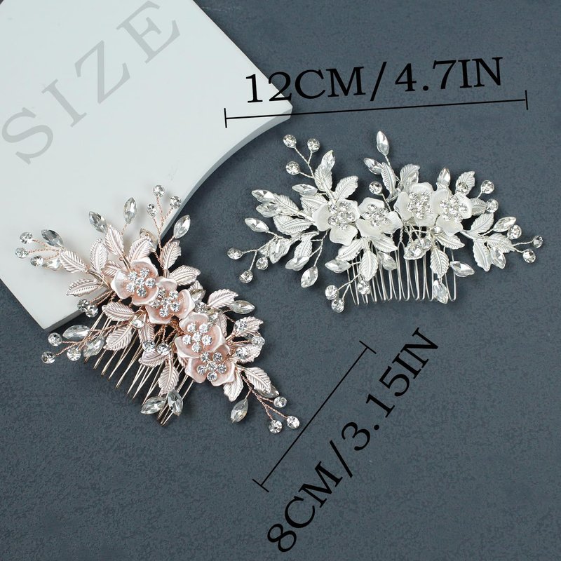 - Wedding hair combs are elegant and have leaves and flower rhinestone, they will meet all your needs for wedding dress. Color:Silver,Rose Gold.