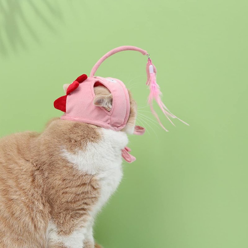 - A toy to excite cats: cats go crazy for chase games! Combining a hat and feather toy into one great cat toy, this cat toy is an irresistible temptation for cats!