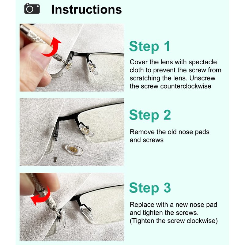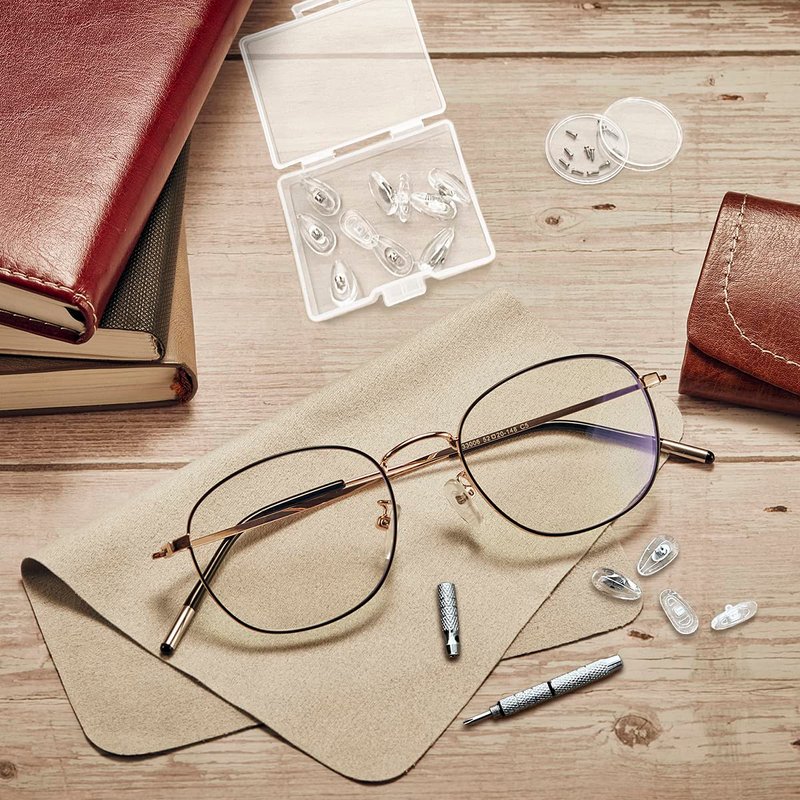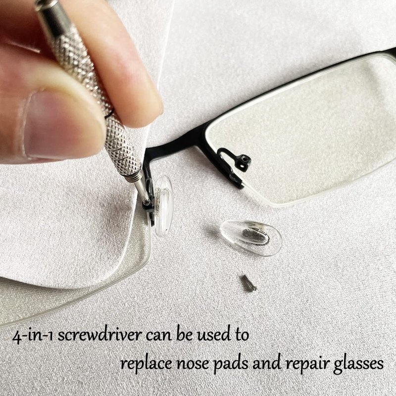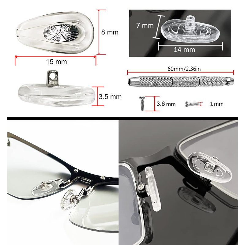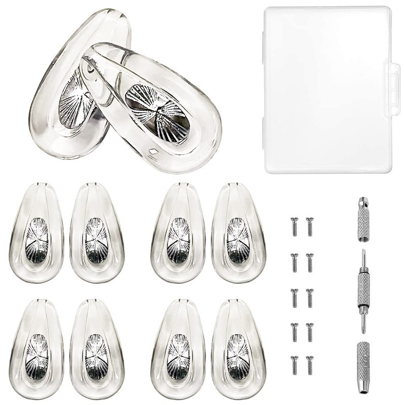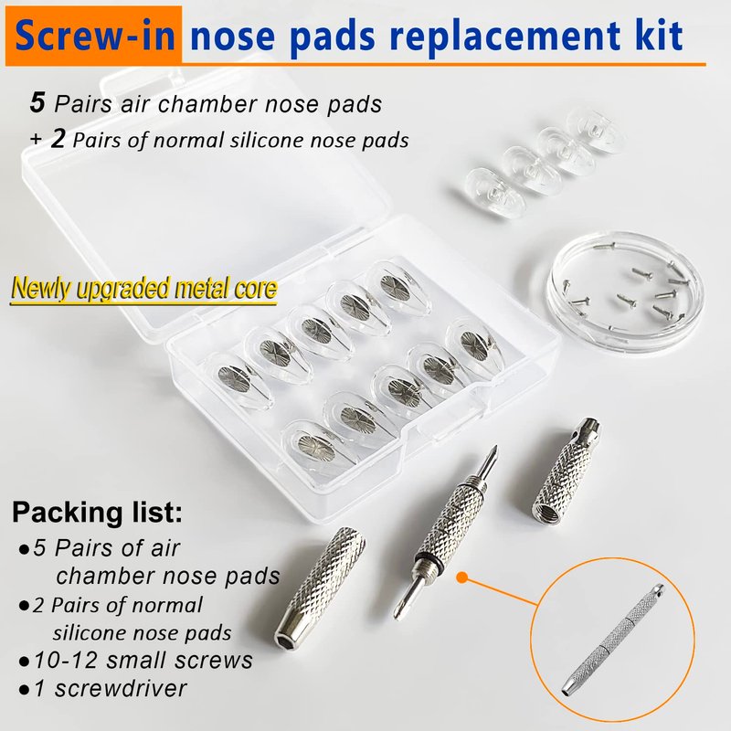 - Product Contains: 5 pairs of air chamber nose pads+2 pairs of normal silicone nose pads, 10 universal screws for nose pads, 1 piece 4-in-1 multi-function screwdriver.