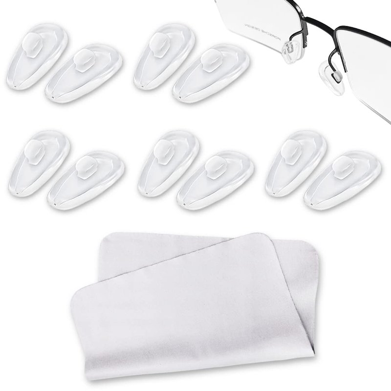 - This package includes 5 pairs of push-in nose pads and one cleaning cloth.