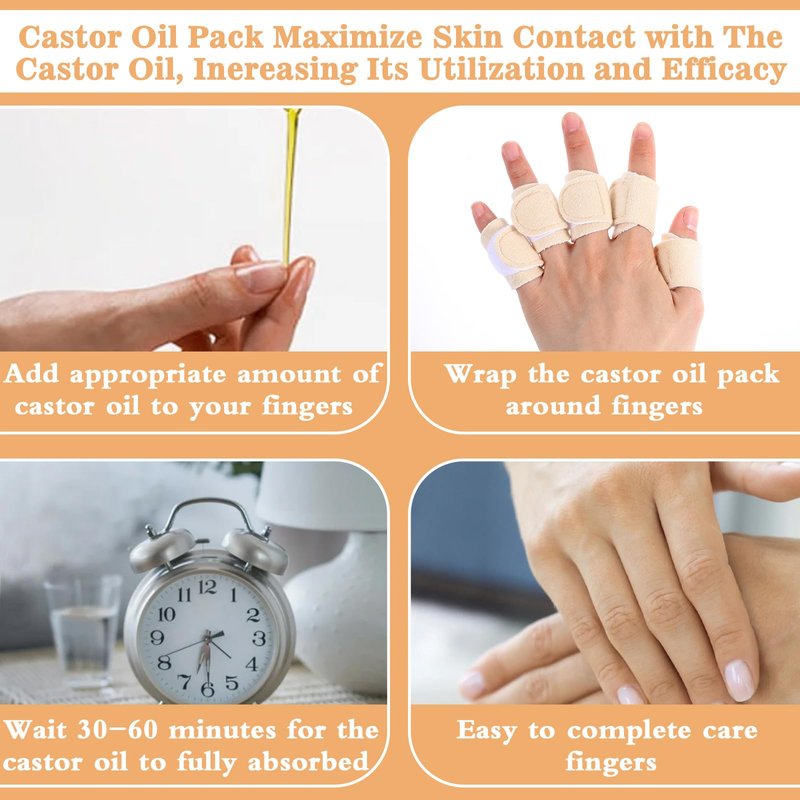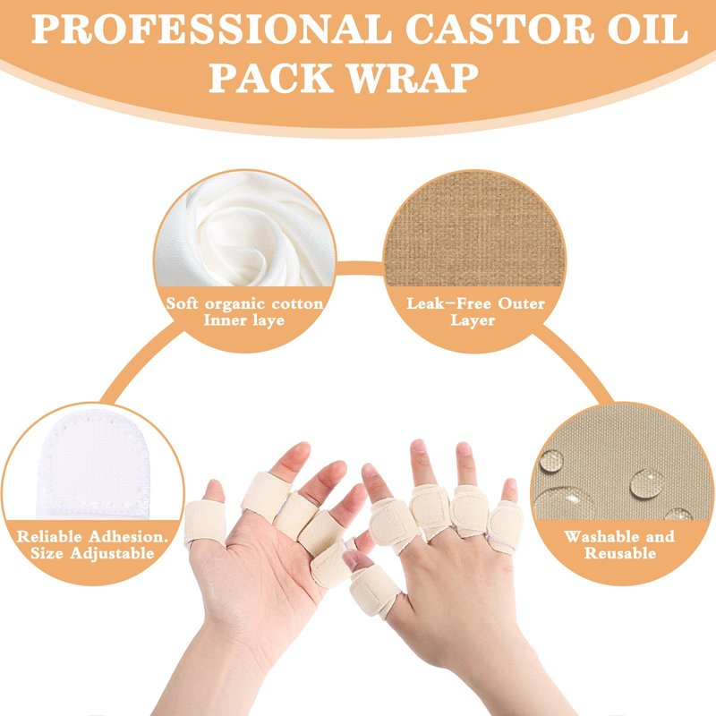 - 【Easy to use】Our castor oil finger sleeves are self-adhesive and easy to use. Just drop a few drops of castor oil on the thumb wrap and wrap it around your fingers. You can wear castor oil hand wraps during activities, housework, or other activities without worrying about any troubles