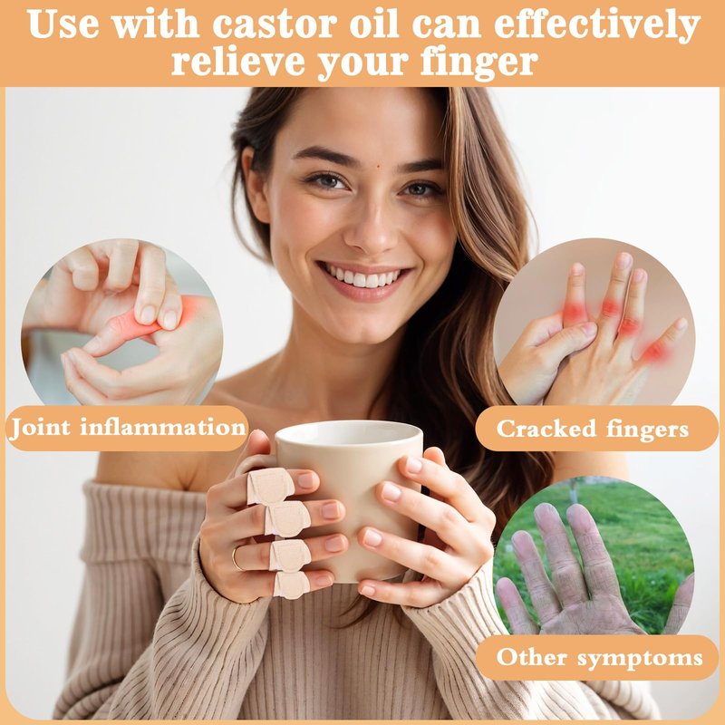 - 【Adjustable and secure fit】Our self-adhesive finger sleeves are approximately 10.5 × 4 × 0.3 cm / 4.13 × 1.57 × 0.11 inches in size, and the castor oil bandage length is adjustable, suitable for most people to wear comfortably and securely. The castor oil pad fits your fingers gently, providing a stable fixation that will not shift during use