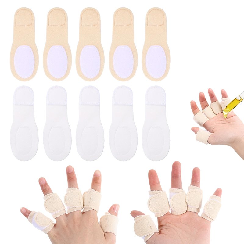 Ptwola 10pcs Castor Oil Pack Wrap for Fingers, Reusable Soft Castor Oil Compress Pack Self Adhesive Adjustable Finger Wraps for Finger Thumb Arthritis Tingling Cracking(Oil Not Included)