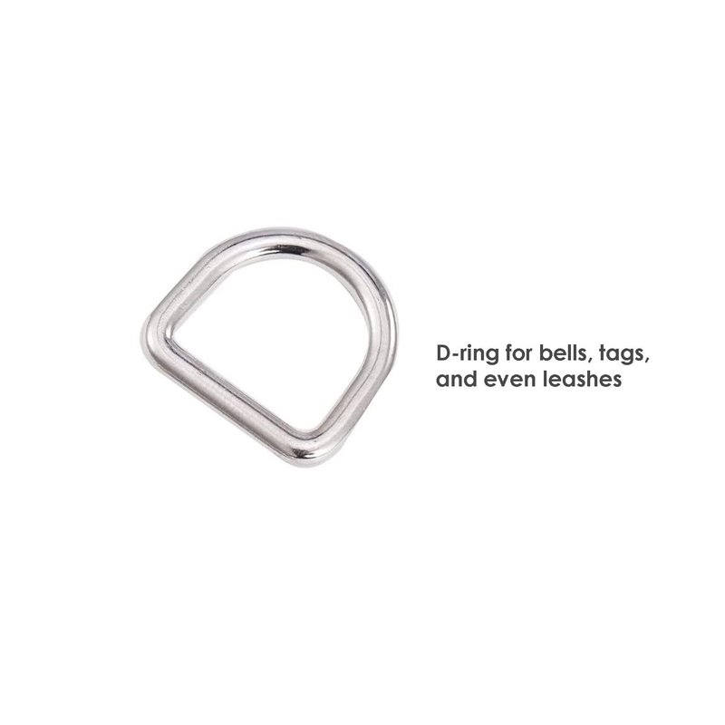 - A solid metal d-ring is added for tags, bells or even a leash.