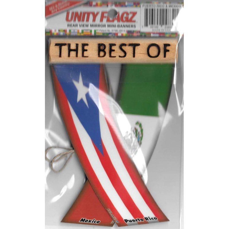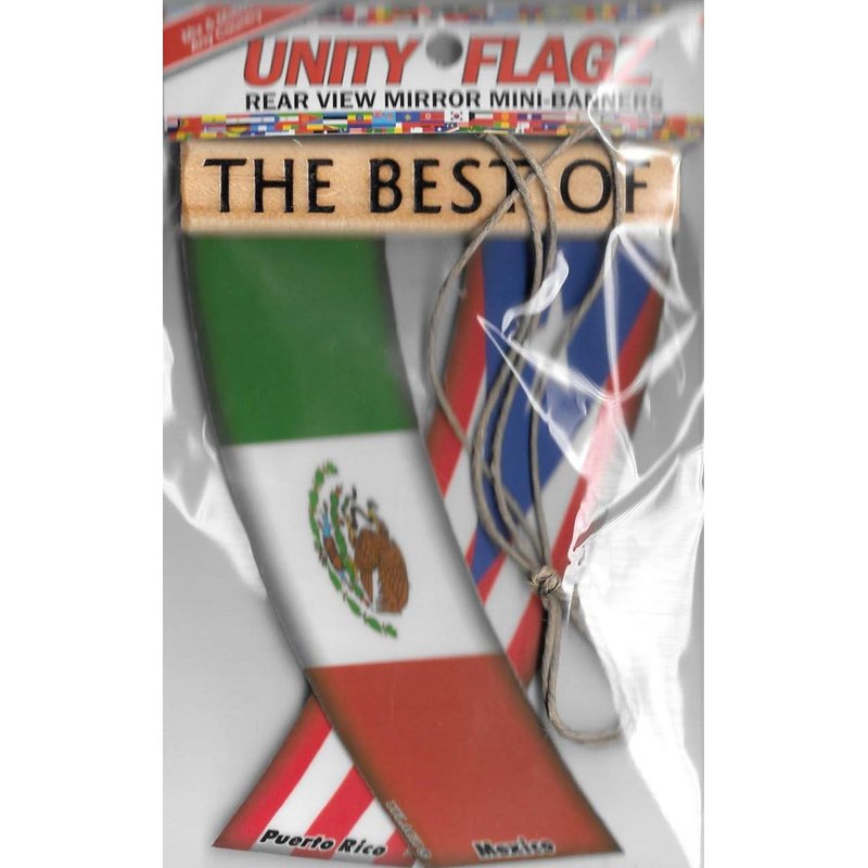 Puerto Rico and Mexico Mexirican Boricua Mejicano Caribbean South American Rearview Mirror Mini Banner Hanging Flags For The Car Unity Flagz™.