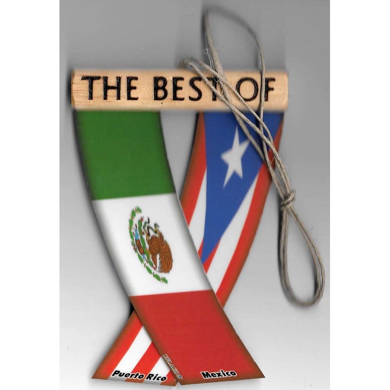Puerto Rico and Mexico Rear view mirror mini hanging banner flags for the car Unity Flagz Unity Flagz are small handmade hanging ornaments that consists of two, three and up to four country flags united. Symbolizing unity between them, held by a crafted small piece of wood with the letters 'THE BEST OF' burned into it representing a person or a couples Best of Both Worlds. Made and assembled in USA. Uflagz offers an endless variety of flag combinations, mixing up to four countries in one flag. Giving you an opportunity to truly represent where you’re from, as well as representing you and loved ones in one unique flag. The materials used for our flags are industrial grade hard card stock, UV ink, protected with and industrial grade thick UV coated plastic lamination adding an extra layer of protection, extending the life and colors of this product 10x more than the original fabric square mini banners, united by two pieces of wood with the letters THE BEST OF burned into them and HEMP string as the cord used to hang the flags. Giving the Unity Flagz a handmade natural look! Build your own custom Unity Flagz combinations. Category: unity flags, united flags, the best of both worlds, the best of, flags of the world, united countries, car flags, v flag, two country flags, double flags, both worlds, rear view mirror flags, mini banner, crossed flags, flags for the car, mixed flags, pride flags, represent, diverse flags, diversity flags, world flags, country flags, nation flags, nationality flags, European flags, middle east flags, American flags, Asian flags, hanging flags, cool flags, uflagz, our worlds together flags, worldwide flags, best of both worlds flags, pride, my mixed flag, my mixed flags, flags coming together, union flags, international flags, flags of all countries, national flags, rear view mirror mini banners, representing, all country flags, flags mixed, design flags, flag combiner, make a flag, flags, flags of countries, united states flags, flag