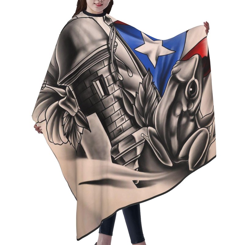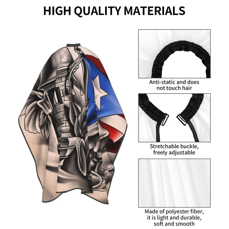 Puerto Rico Flag Barber Cape, Hair Stylist Salon Haircut Gown, Hair Cutting Apron with Adjustable Closure, Professional Salon Cutting Barber Skirt