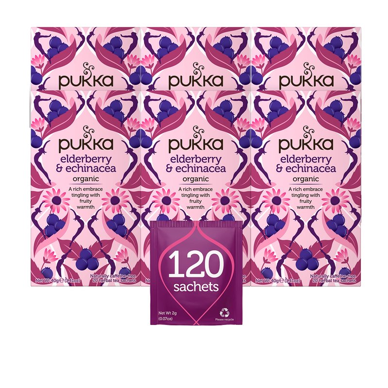 Pukka Elderberry & Echinacea Herbal Tea, 20ct (Pack fo 6)