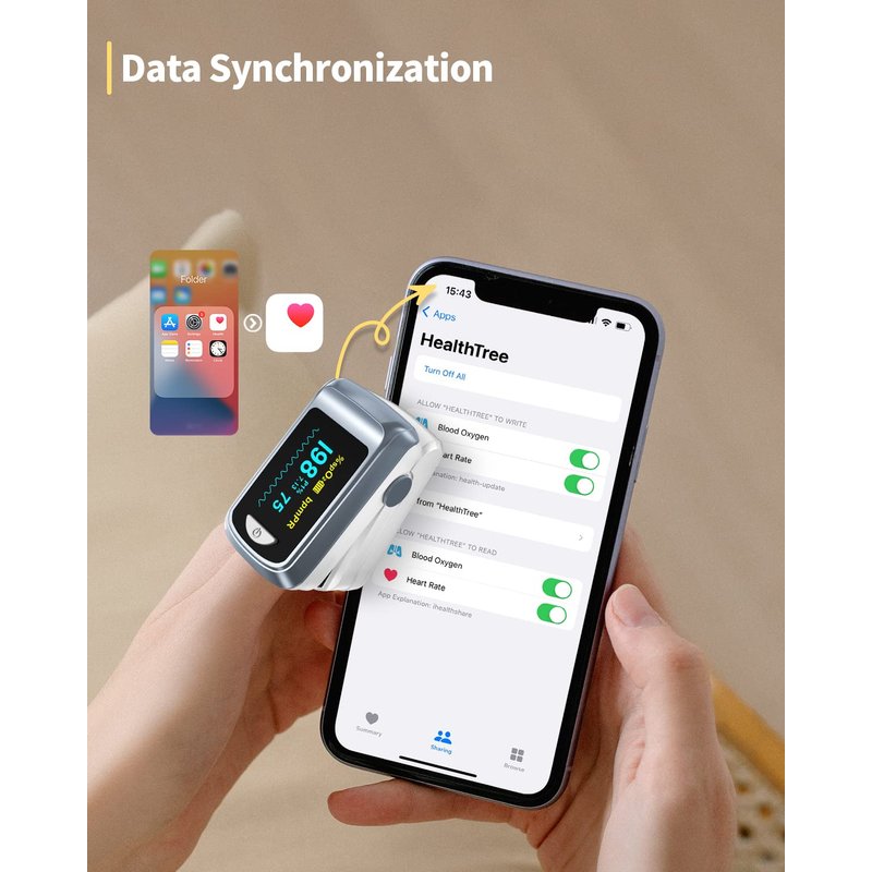 Pulse Oximeter HealthTree Oxygen Monitor Fingertip, Bluetooth Pulse Ox with Free APP, O2 Pulse Oximeter Finger and Heart Rate Monitor, 2 X AAA Batteries, Lanyard