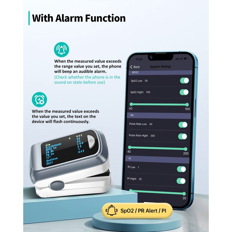 - Warnings for abnormal readings:when you measuring, if o2 level value or pulse rate value exceeds the preset limit, the value which exceeds limit will flash on the screen, keep an eye on your spo2 and pr